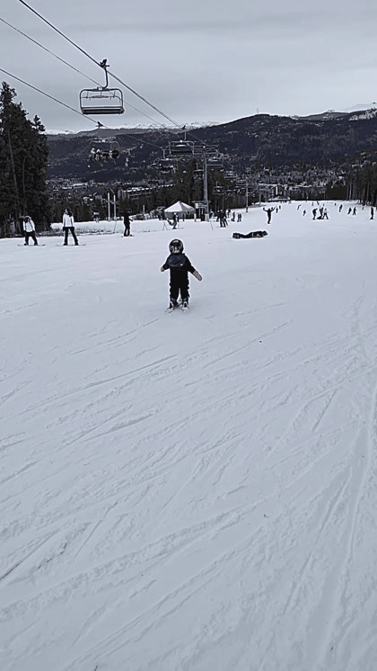 Riding the lift can be tough with little ones a magic carpet lift is perfect for a first time skier, even though its bad for the wax on your skis. I usually leave my skis at the top and walk up and down the bunny hill. This way I can help my kids onto the lift and stand with them right in front of me so I can support them when they decide to fall over. Talk to the liftie if you need help getting on or off, they’re always super helpful.